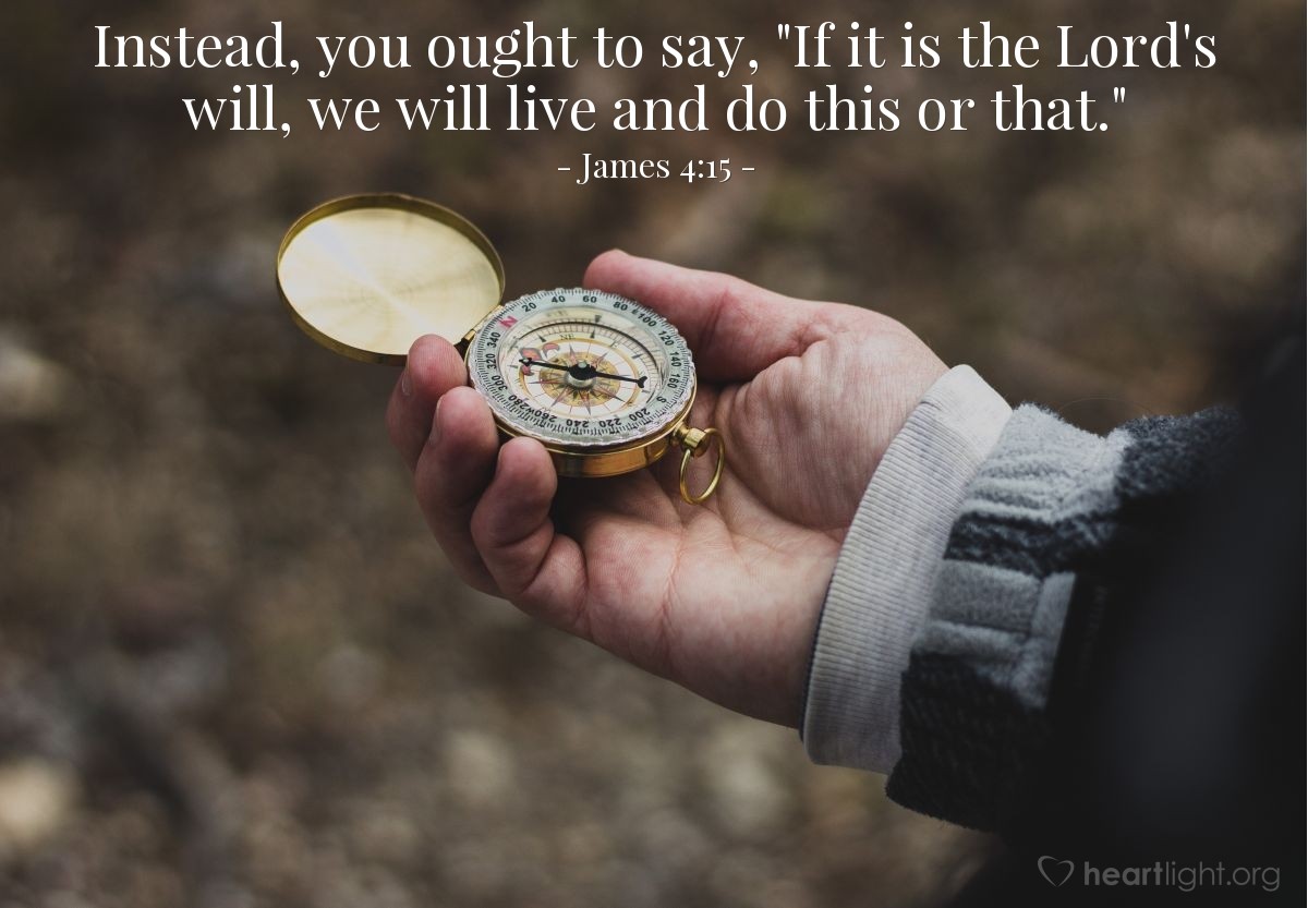 “If the Lord wills.” The way to take the uncertainty out of tomorrow and bring in certainty is to trust it to Him. Believe that God loves you and has a plan for your life. Trust that He is with you regardless of what comes— and leave yourself open to be directed and guided by Him.